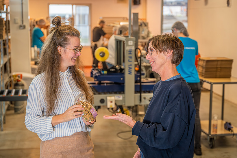 Op dit moment hebben er al zo’n veertig mensen een werkervaringsplek bij Kari’s, maar toch wil het sociale bedrijf dit graag nog verder uitbreiden. Waar er voorheen één jobcoach was, zijn er met Annick Mulder en Ingrid van Eijk tegenwoordig twee met driedubbel zoveel uren. Samen zijn ze bezig om het werkervaringstraject nog beter neer te zetten: “We bouwen aan een nog duidelijker programma”, zo vertellen ze. “We bieden mensen al een plek waar ze tot bloei kunnen komen, maar in de toekomst zouden we ook graag een garantie op een baan willen bieden. Dus als een traject bij ons eindigt, zouden we mensen heel graag willen zeggen: wij weten nog wel een mooi bedrijf waar je perfect zou passen. Dat staat nu nog in de kinderschoenen, maar dat is wel waar we naartoe willen.” Ook Timo kwam bij Kari’s binnen om te re-integreren, maar voor hem bleek die volgende stap niet nodig. Na verschillende functies te hebben bekleed, kreeg hij bij Kari’s een vaste baan als webshop coördinator. “Ik heb hersenletsel overgehouden aan een ongeluk, dus ik kwam hier zeven jaar geleden om uren op te bouwen”, zo vertelt Timo. “Ik had geluk, want uiteindelijk kon ik hier zelfs blijven. Voor mij fantastisch, want ik kom elke dag met heel veel plezier naar mijn werk. Ik vind vooral de sfeer binnen het bedrijf heel fijn. Je doet het echt met elkaar en er is zoveel ruimte. Als ik een slechte dag heb bijvoorbeeld, dan weet ik dat ik gewoon een appje kan sturen en dat het écht goed is.